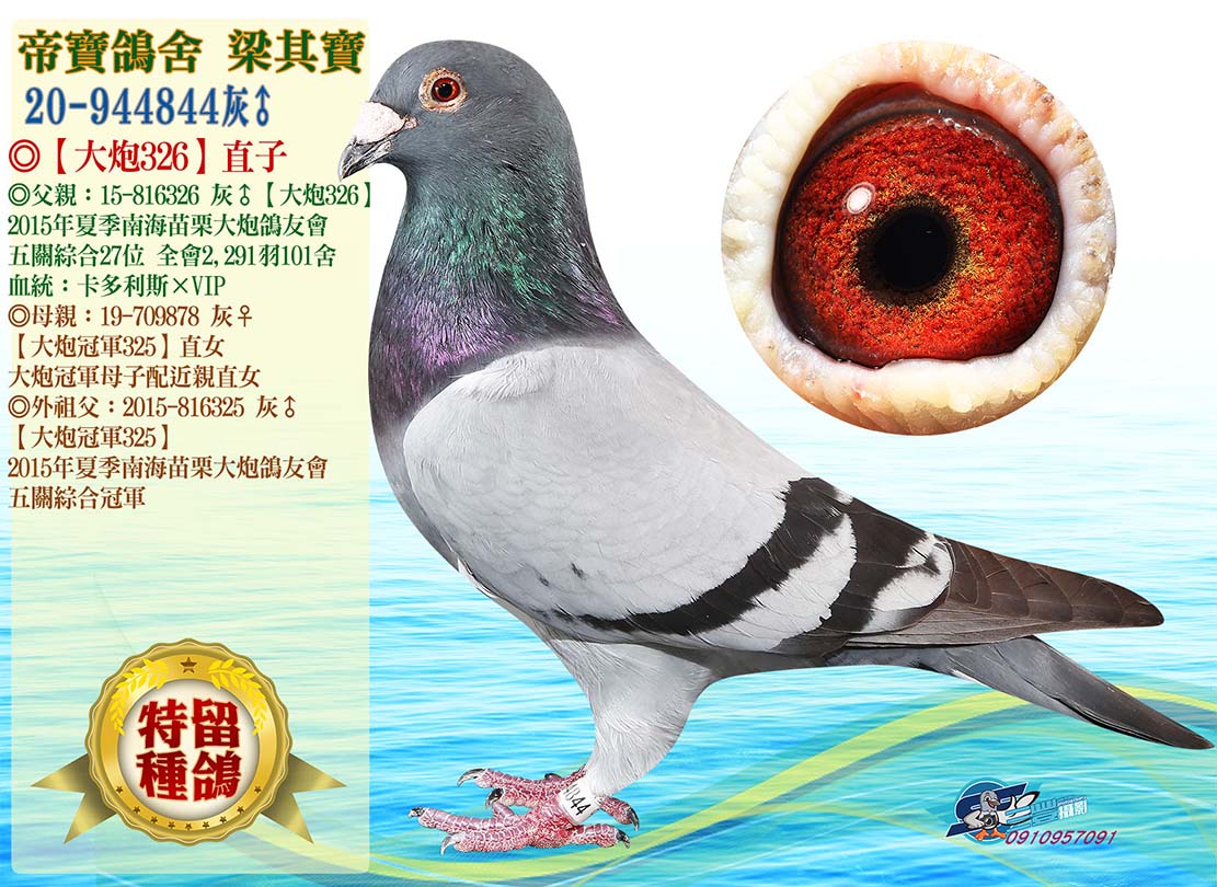 ◎父同孵 2015-816326 灰♂【大炮326】2015年夏季南海苗栗大炮鴿友會 五關綜合27位 全會2,291羽101舍