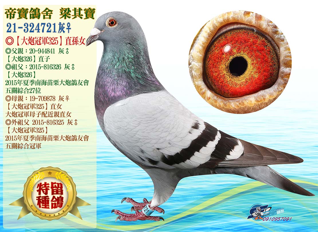 母鴿: 2019-709878 灰♀ 【大炮冠軍325】直女