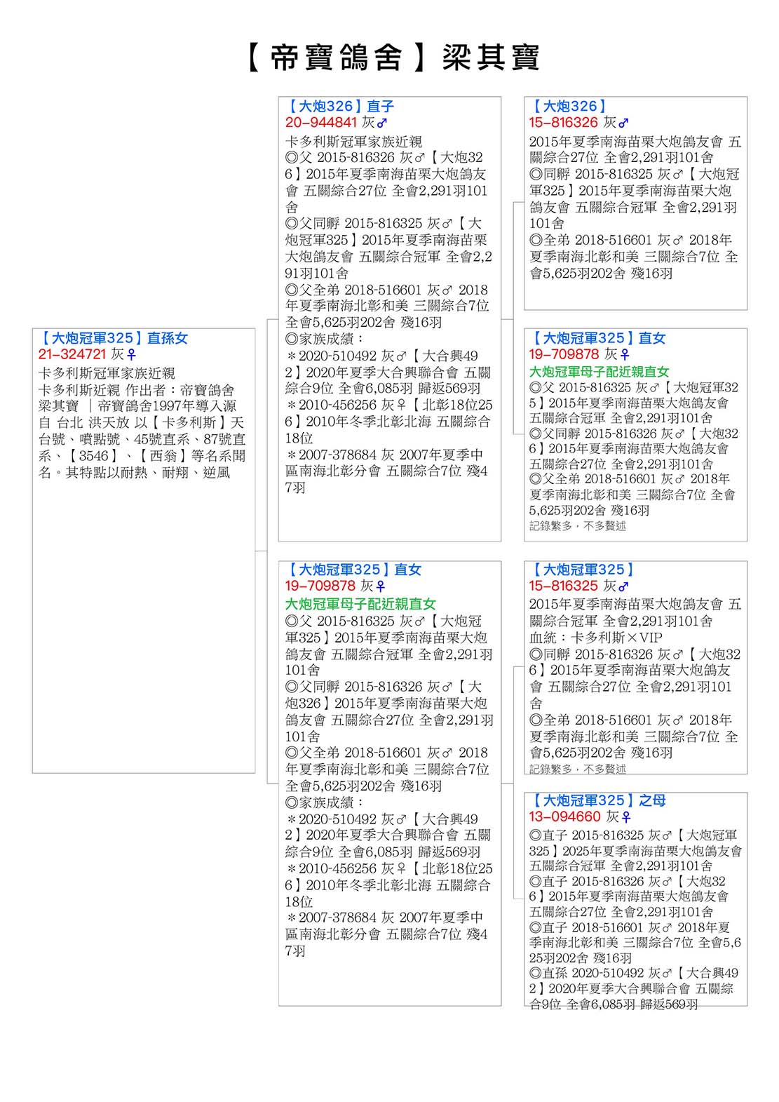 ◎父同孵 2015-816325 灰♂【大炮冠軍325】2015年夏季南海苗栗大炮鴿友會 五關綜合冠軍 全會2,291羽101舍