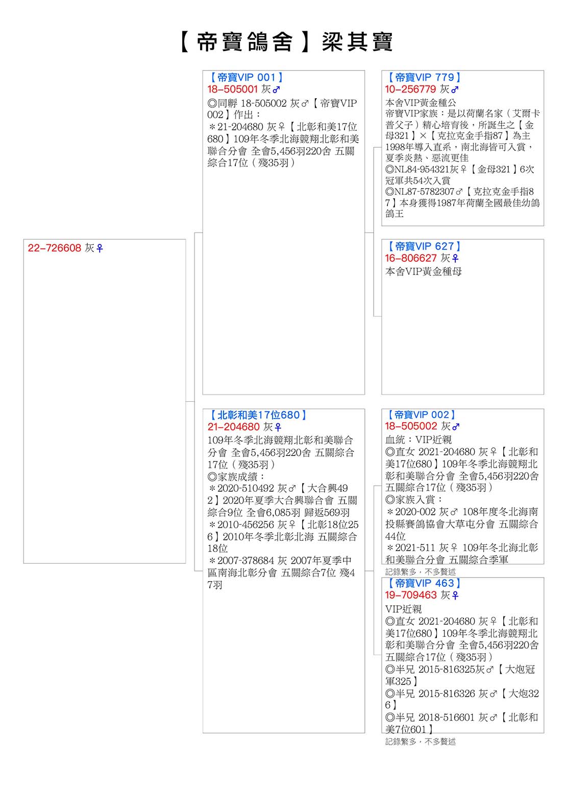 *21-204680 灰♀【北彰和美17位680】109年冬季北海競翔北彰和美聯合分會 全會5,456羽220舍 五關綜合17位(殘35羽)