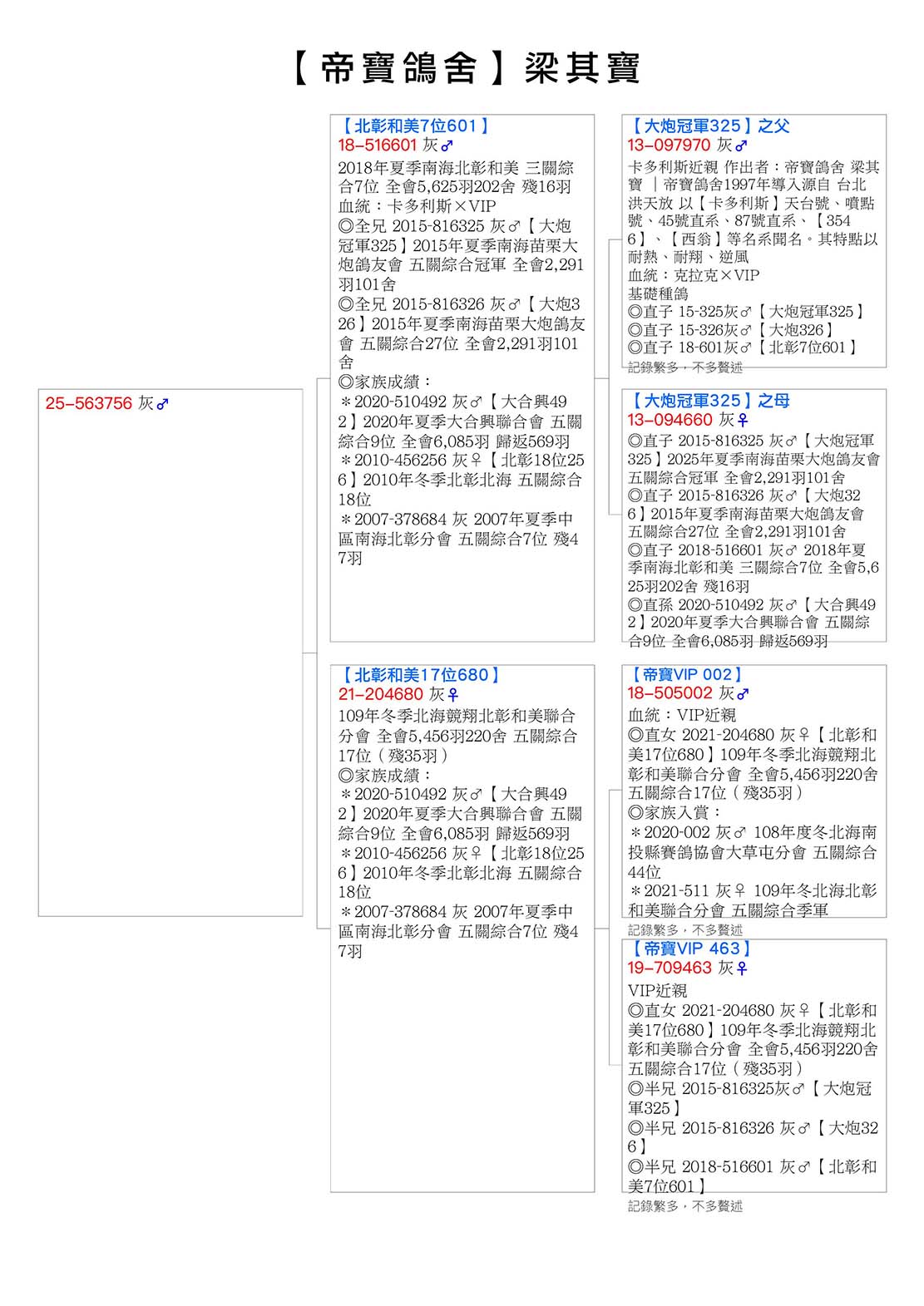 ◎全兄 2015-816325 灰♂【大炮冠軍325】2015年夏季南海苗栗大炮鴿友會 五關綜合冠軍 全會2,291羽101舍