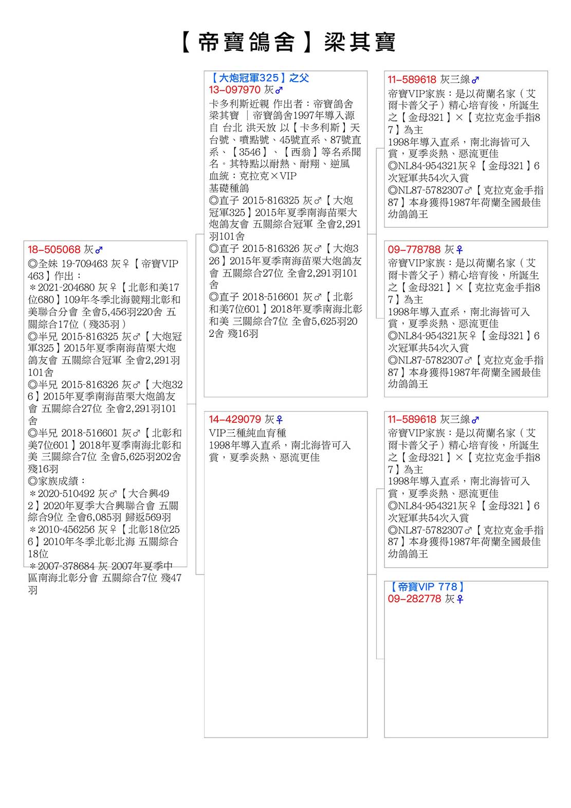 父鴿: 2013-097970 灰♂ 【大炮冠軍325】之父