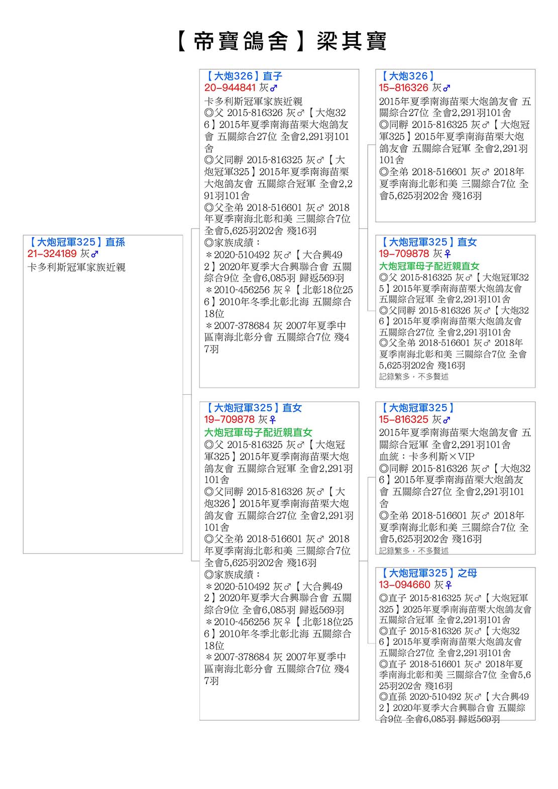 ◎父同孵 2015-816325 灰♂【大炮冠軍325】2015年夏季南海苗栗大炮鴿友會 五關綜合冠軍 全會2,291羽101舍