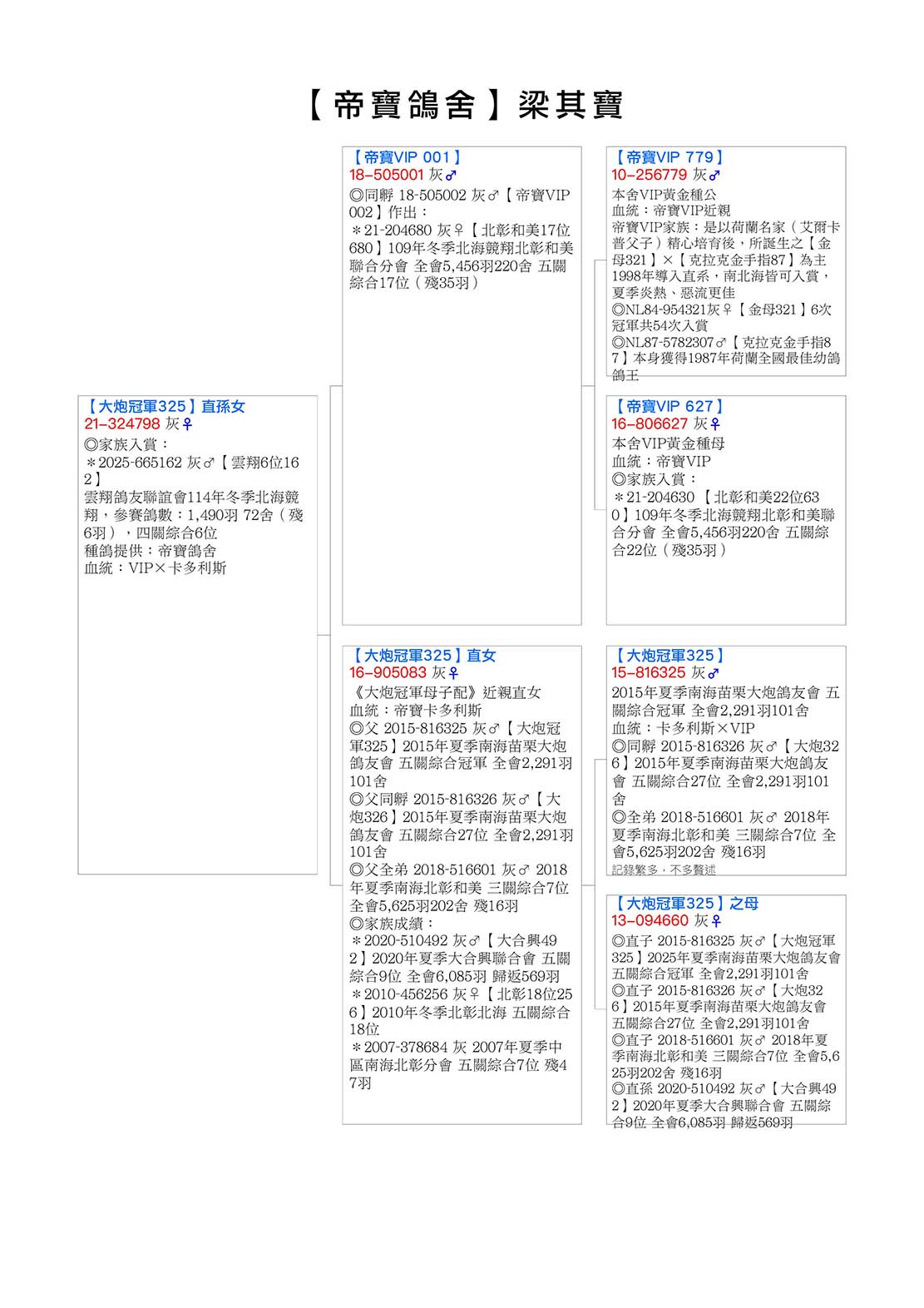 ◎外祖父:2015-816325 灰♂ 【大炮冠軍325】 2015年夏季南海苗栗大炮鴿友會 五關綜合冠軍 同孵 2015-816326 灰♂【大炮326】 五關綜合27位