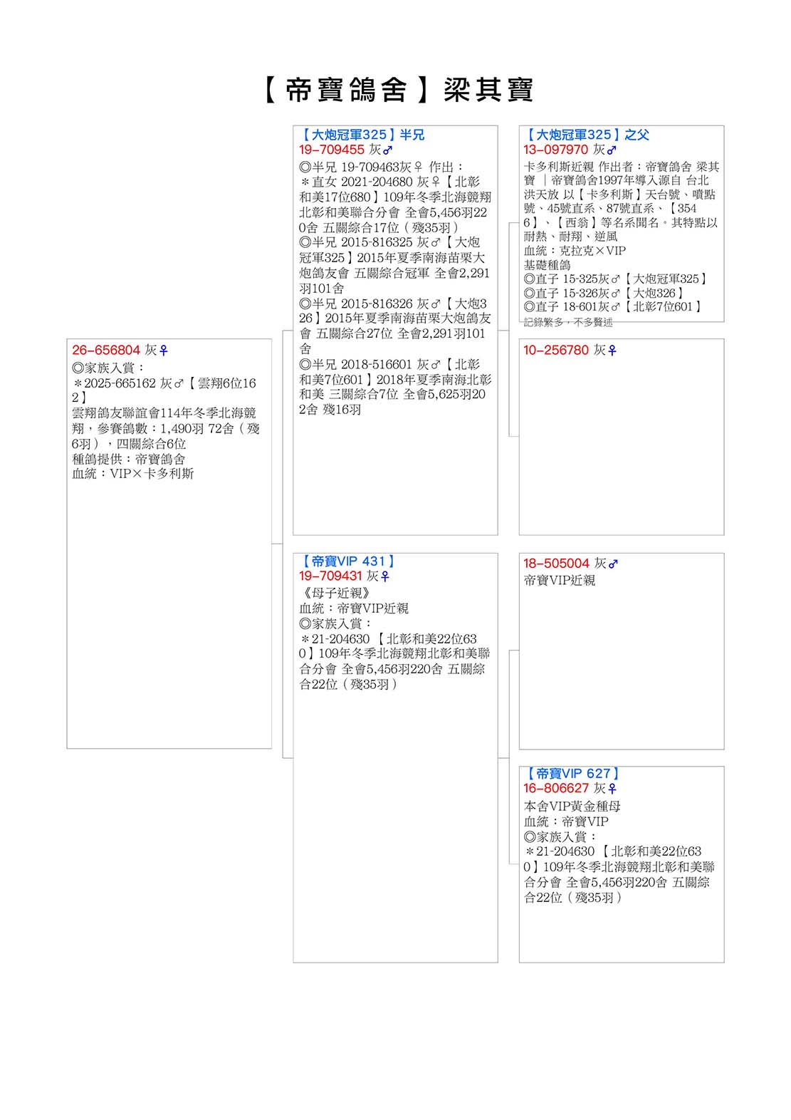 *家族最新入賞2025-665162 灰♂【雲翔6位162】雲翔鴿友聯誼會114年冬季北海競翔,參賽鴿數:1,490羽 72舍(殘6羽),四關綜合6位 種鴿提供:帝寶鴿舍  血統:VIP×卡多利斯