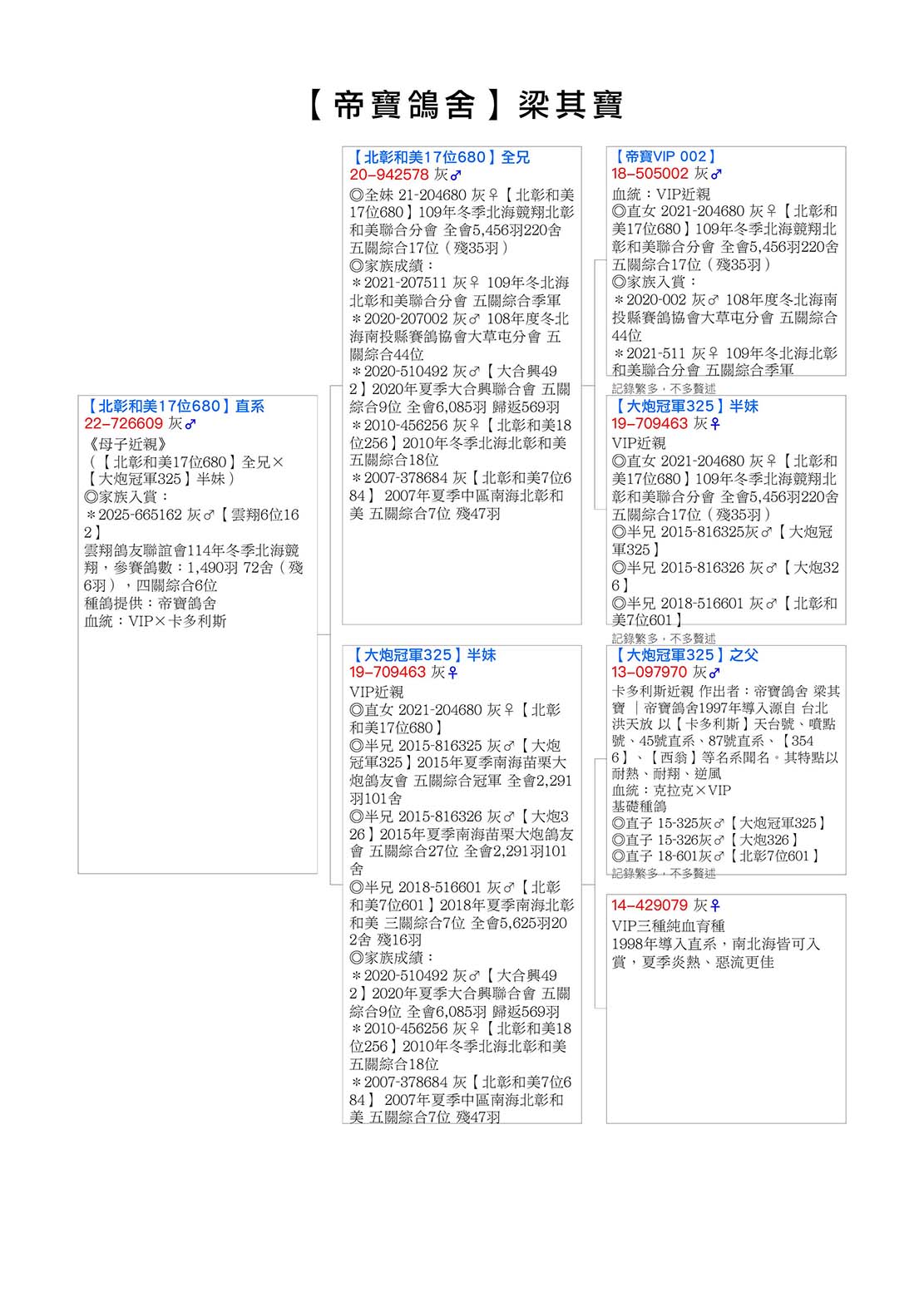 *家族最新入賞2025-665162 灰♂【雲翔6位162】雲翔鴿友聯誼會114年冬季北海競翔,參賽鴿數:1,490羽 72舍(殘6羽),四關綜合6位 種鴿提供:帝寶鴿舍  血統:VIP×卡多利斯