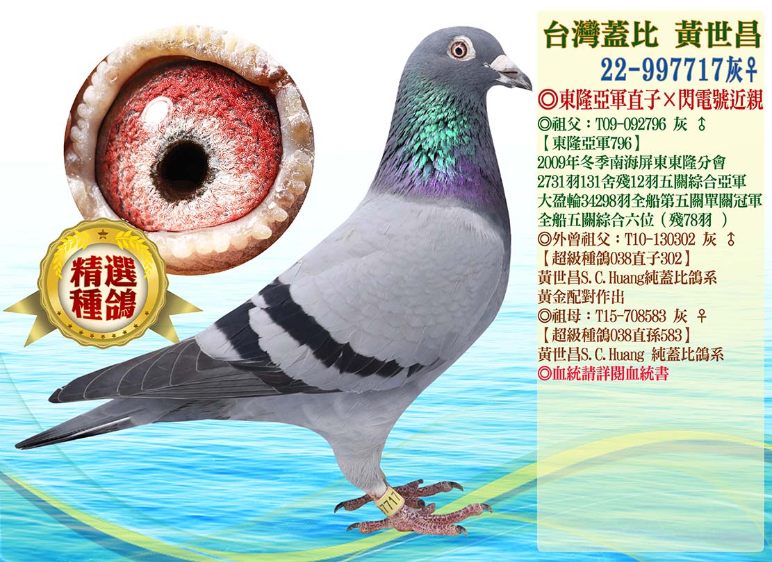 ◎祖母:T15-708583 灰 ♀ 【超級種鴿038直孫583】黃世昌S.C.Huang 純蓋比鴿系