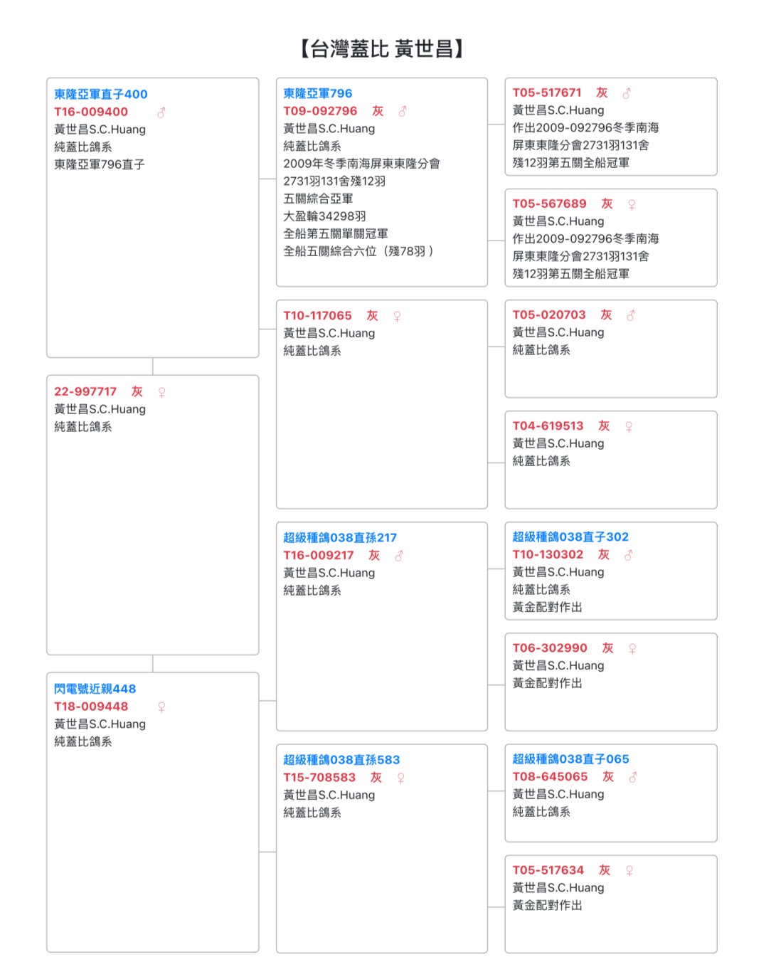 ◎外曾祖父:T10-130302 灰 ♂ 【超級種鴿038直子302】黃世昌S.C.Huang純蓋比鴿系 黃金配對作出