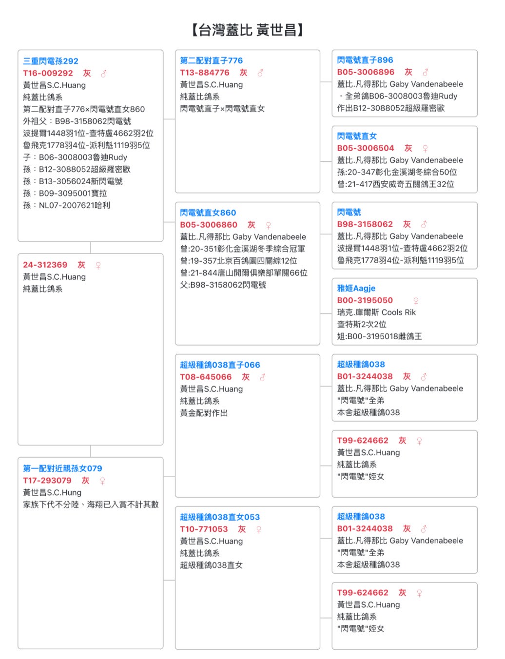 台灣蓋比鴿系後代入賞分享成績~