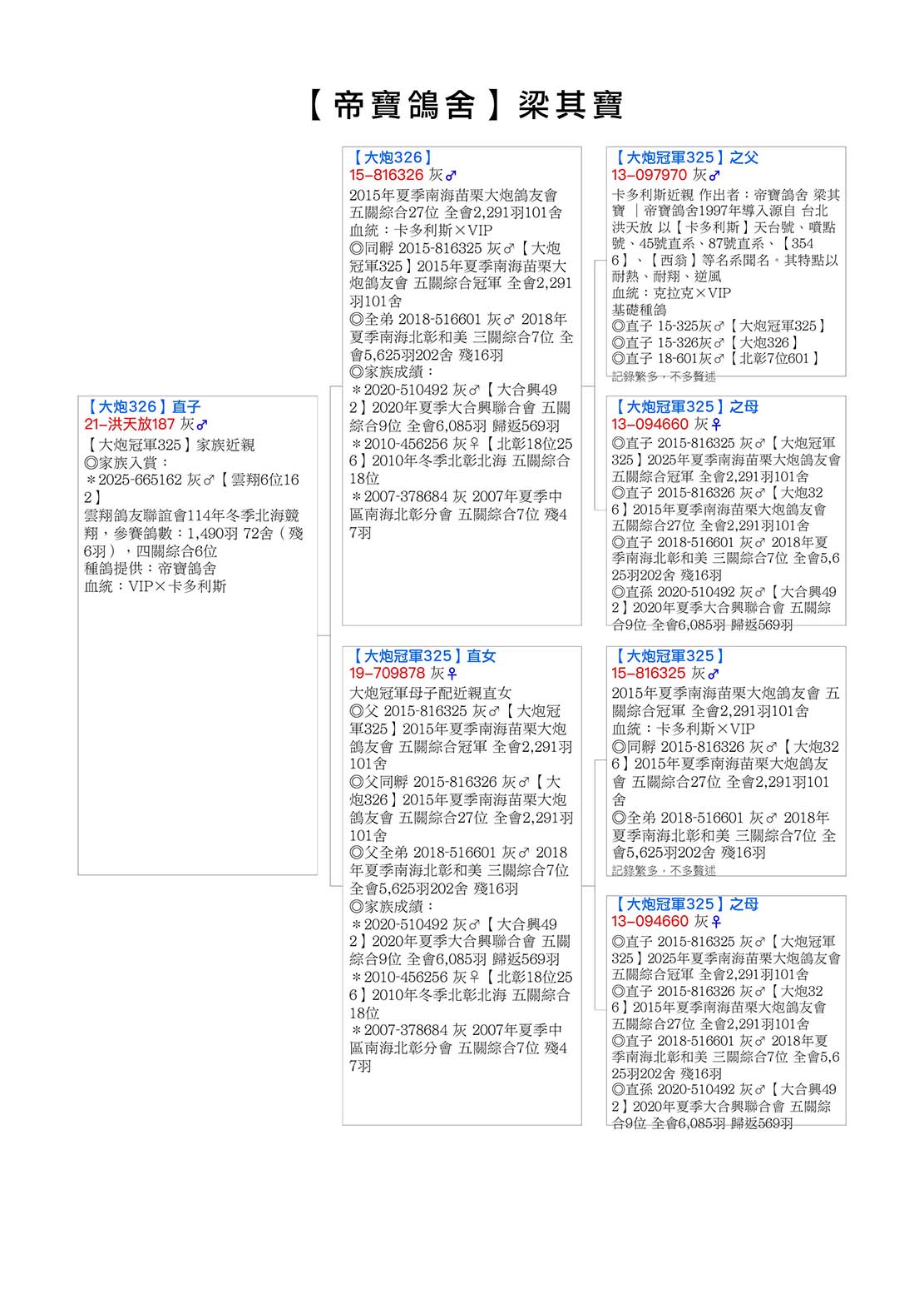 ◎父親:15-816326 灰♂【大炮326】 2015年夏季南海苗栗大炮鴿友會五關綜合27位 全會2,291羽101舍|血統:卡多利斯×VIP