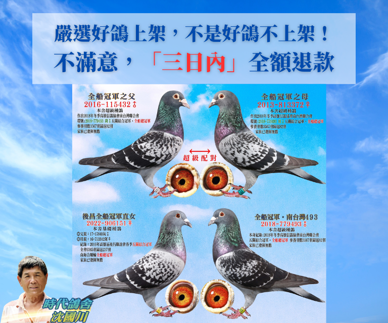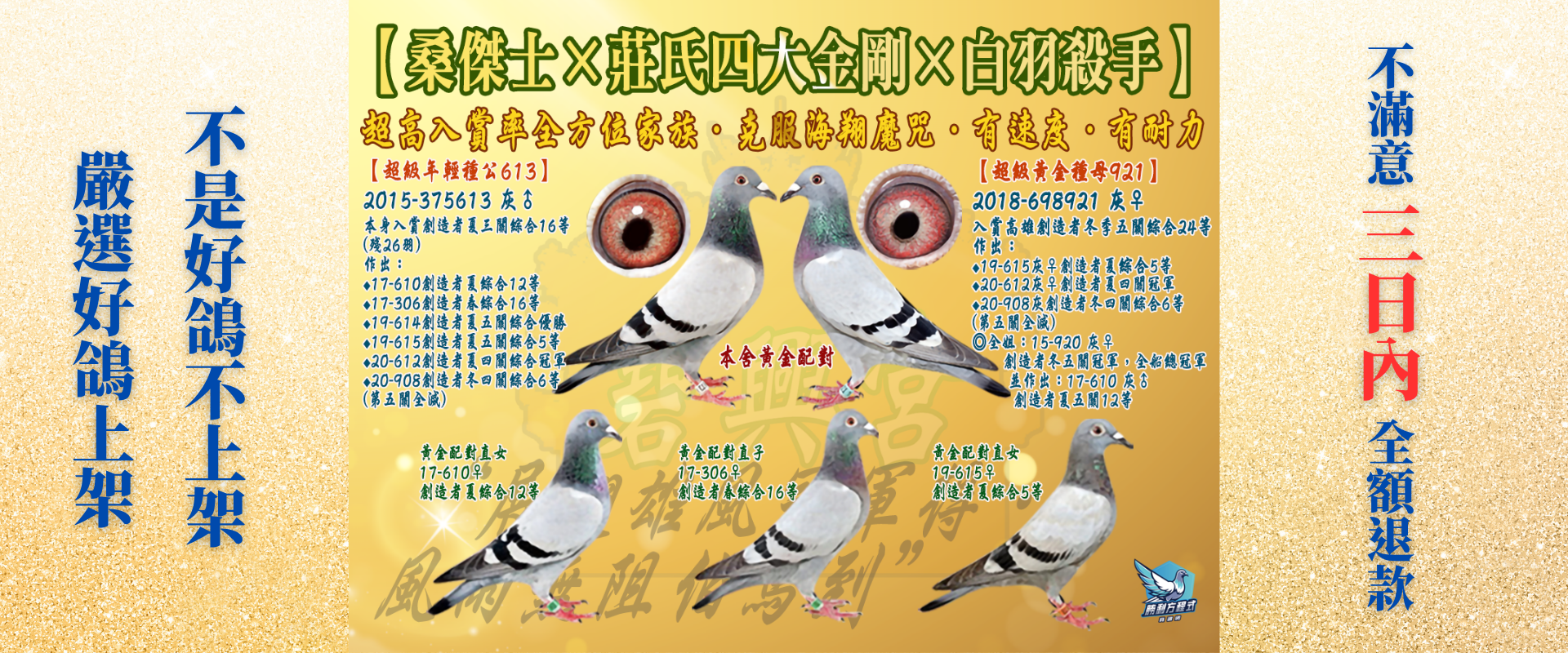 4 此為「贈送鴿」不孕(無形)、(不生蛋)恕不接受賠償或「換鴿」。
